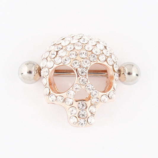 Anti-Allergy Medical Stainless Steel Rod Human Body Piercing Golden Skull Rhinestone Nipple Ring